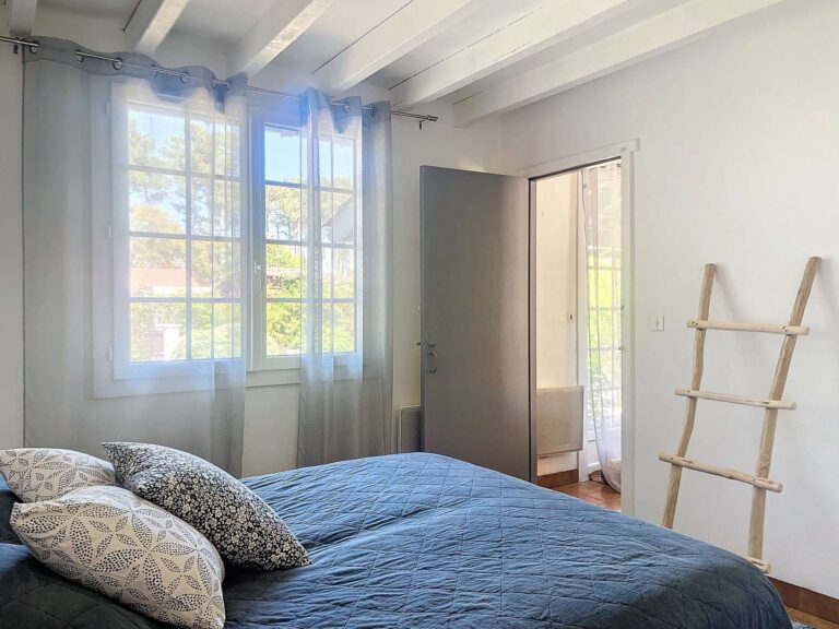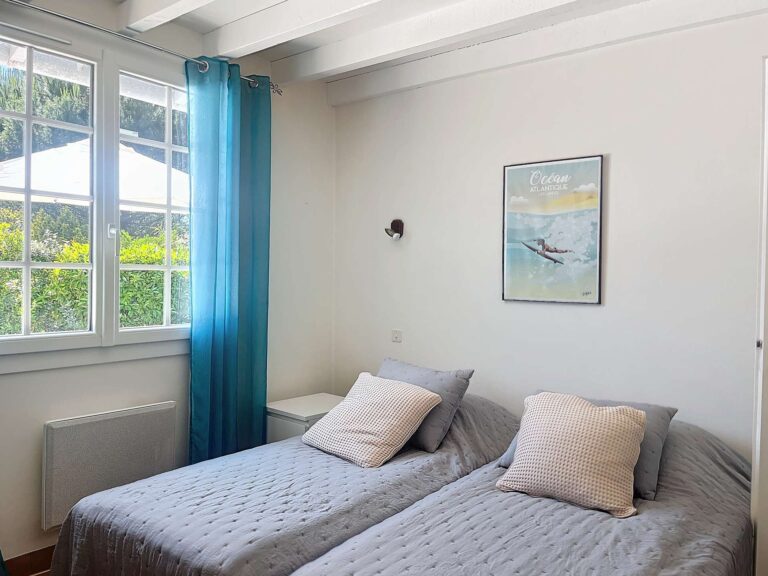 Elle est composée de : séjour avec espace repas et salon ; cuisine équipée (four, lave-vaisselle, cafetière filtre) ; 1 chambre avec 1 lit en 140, 1 chambre avec 2 lits en 90, 1 chambre avec 2 lits superposés (en 140 en bas et en 90 en haut) et 1 lit en 90 ; 1 salle d’eau avec douche et lavabo ; 2 WC séparés ; 1 cellier avec douche, lave-linge et sèche-linge. Joli terrain paysagé de 700 m². WIFI.