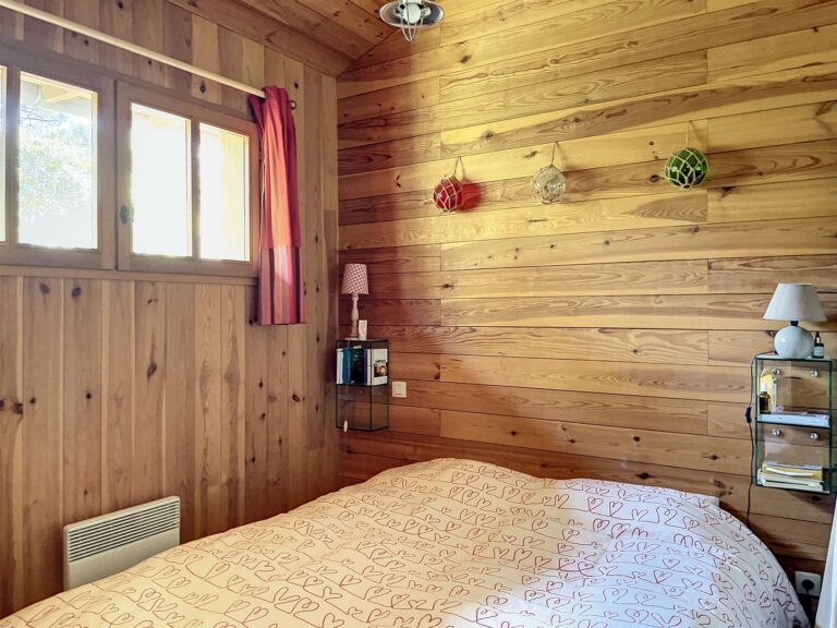 Comprend : Pièce à vivre avec espace cuisine (Nespresso, micro-ondes, grille-pain, bouilloire, lave-vaisselle, réfrigérateur…) et salon. CHAMBRE 1 : lit en 140*200. CHAMBRE 2 : 2 lits superposés en 80*200 et porte donnant accès à la terrasse. CHAMBRE 3 : 2 lits superposés en 90*200. 1 salle de bain avec baignoire et double vasque, 1 WC séparé. CHAMBRE ANNEXE avec accès par l’extérieur et donnant sur 1 terrasse : 1 lit en 160*200, 1 salle d’eau avec WC. TERRASSE COUVERTE : tables, chaises, transats, plancha. Douche extérieure. Jardin privatif non clos sur domaine familial. Il est primordial de respecter le calme et la tranquillité des lieux. Drones interdits. Draps et serviettes de toilette fournis. Capacité : 8 personnes. Les lits superposés ne conviennent pas pour des adultes. La maison ne peut donc être louée que pour un maximum de 4 adultes. WIFI.