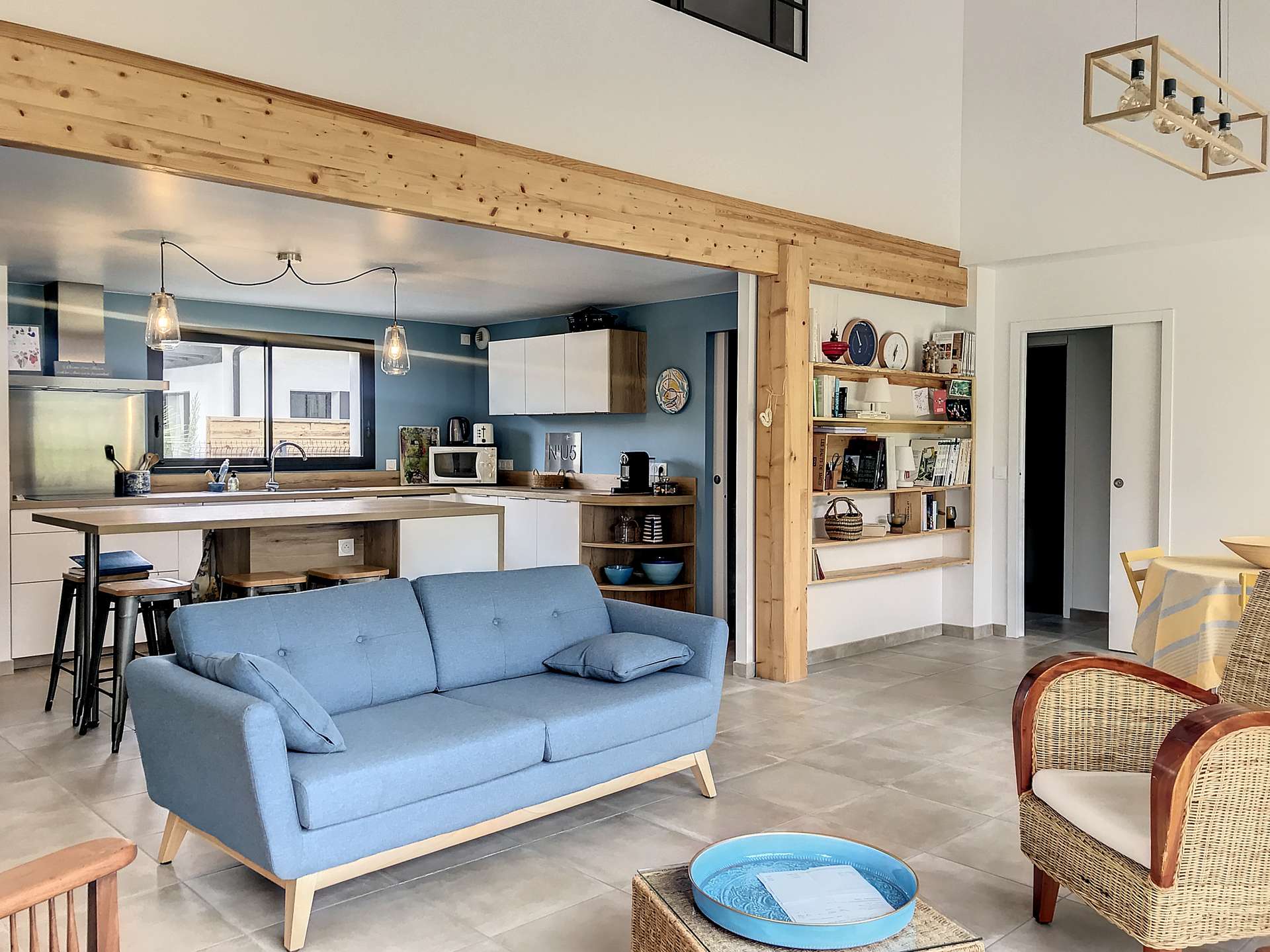Elle est composée de 4 chambres: 1 avec lit en 160 + placard et salle d’eau attenante (douche et vasque)+WC ;   2 chambres avec 1 lit en 140 et rangements ;   1 chambre avec 2 lits 90 rassemblés et armoire;   1 salle de bains avec douche, double vasque;   1 cellier avec lave-linge et frigo-congélateur ;   1 WC séparé ;   1 grande pièce à vivre avec espace repas pour 8 personnes, espace salon avec télévision et canapé et cuisine américaine équipée (frigo, four, micro-ondes, lave-vaisselle, cafetière Nespresso…). WIFI. Jardin non clos.  Draps et serviettes de toilette fournis pour les séjours de minimum 1 semaine. Une participation aux charges de 50€ par semaine sera demandée entre MI OCTOBRE & MI MAI inclus. LE MENAGE DE FIN DE SEJOUR N’EST PAS COMPRIS DANS LE PRIX DE LA LOCATION (option 150€). Assurance annulation offerte avec un supplément de 1€ inclus dans les frais de dossier. Garanties assurance consultables sur demande. Aupa Immobilier. M1050