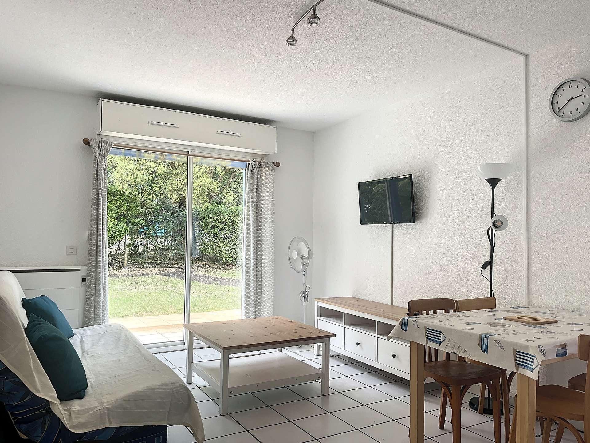 SOUSTONS PLAGE, dans agréable résidence sécurisée avec piscine, tennis et aire de jeux pour enfants, joli T2 avec jardin privatif non clos et terrasse. Le lac est à 2 pas et l’océan à 1,5 km. Laissez votre voiture au parking et prenez votre temps pour profiter de la nature environnante.