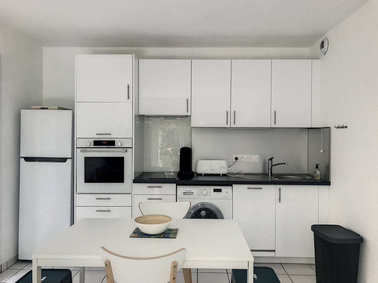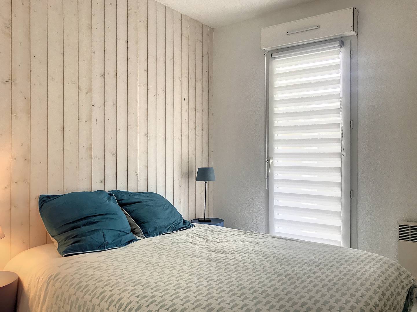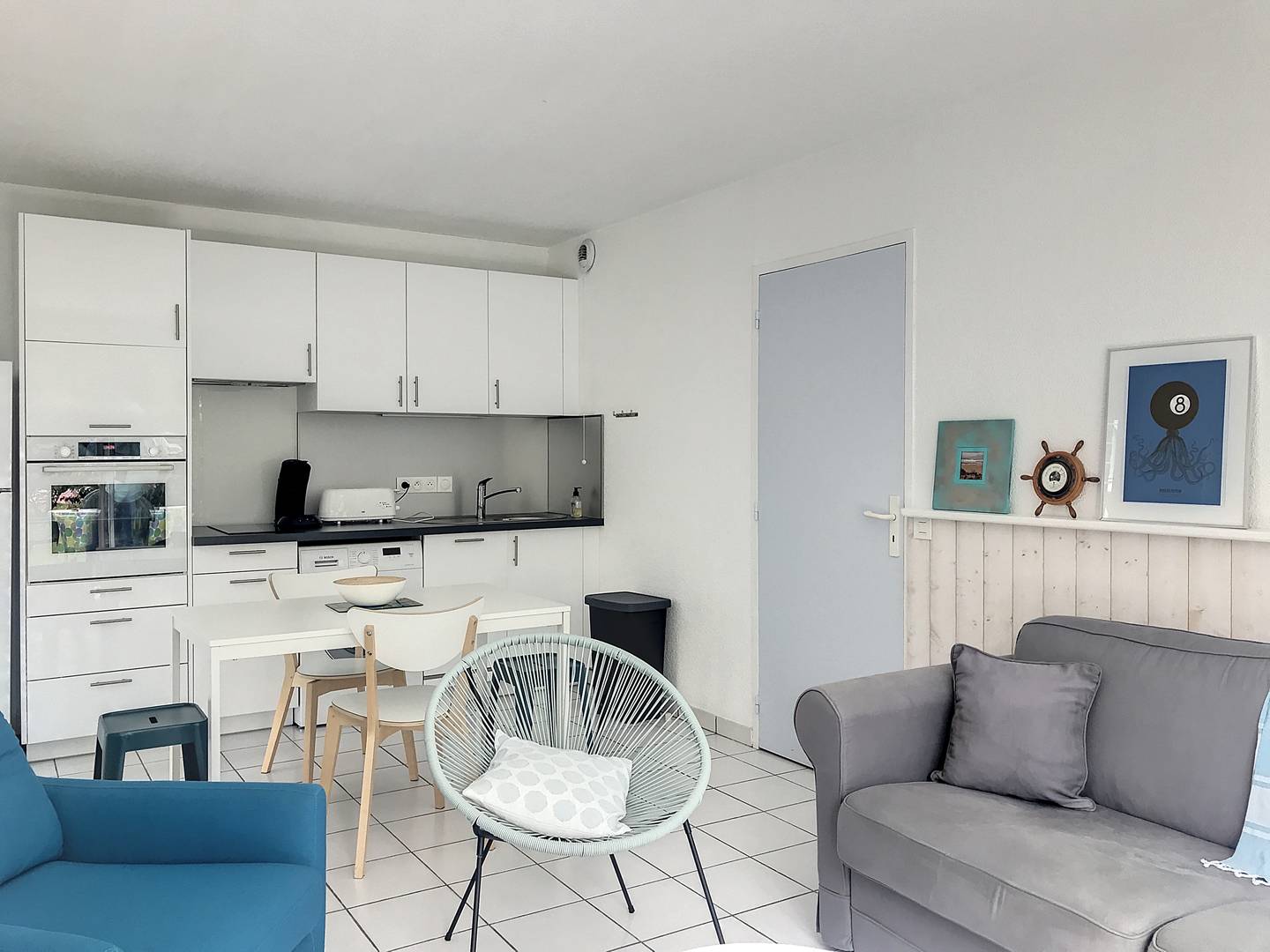 Composition : Séjour/cuisine : canapé convertible, télévision, baie vitrée donnant sur la terrasse, cuisine équipée (lave-vaisselle, four, réfrigérateur-congélateur, micro-ondes, cafetière Senséo, grille-pain, plaques vitrocéramiques, lave linge), salle de bains : baignoire, vasque avec meuble, WC. Chambre : lit double, grand placard, porte-fenêtre donnant sur la terrasse. Terrasse carrelée avec salon de jardin. 1 place de parking privative. Capacité d’accueil : 2/4 personnes.