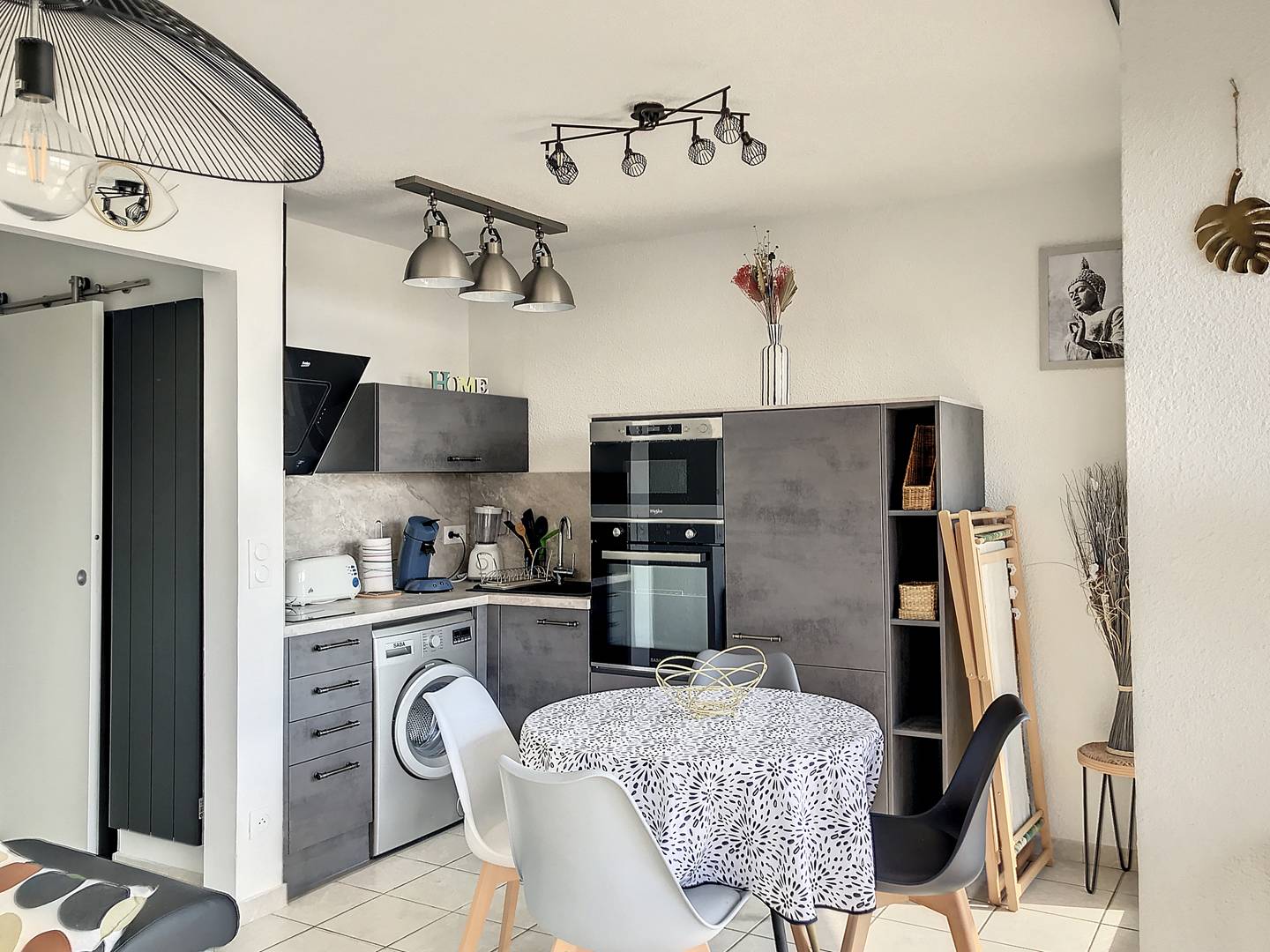 Il comprend : 1 chambre avec lit en 140*200 et armoire, cuisine équipée (induction 2 feux, réfrigérateur, cafetière Senséo, micro-ondes, lave-linge, micro-ondes, blender…), salle d’eau avec douche et lavabo, WC séparé, salon avec canapé convertible et TV, grand balcon avec salon de jardin et chiliennes. Store électrique. Piscine commune ouverte de mi-juin à mi-septembre. Fermeture hebdomadaire le jeudi.