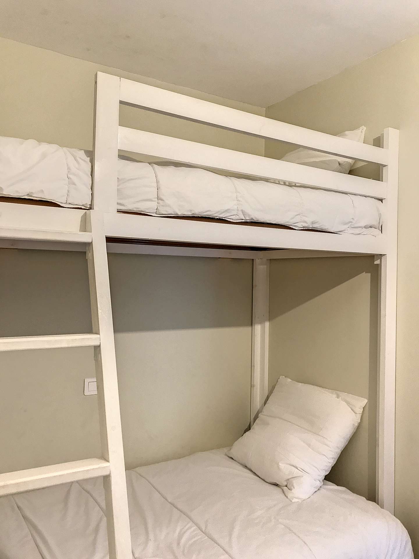Composition : Entrée, séjour (canapé convertible, télévision écran plat, baie vitrée donnant sur le grand balcon), coin cuisine équipée (frigo/congélateur, micro-ondes, four, grille-pain, cafetières filtre + Senséo, plaque induction, lave-linge…), 1 chambre avec lit en 140*190, 1 chambre avec 2 lits superposés (90*190 et 120*190), salle d’eau, WC séparé. Grand balcon offrant une vue imprenable sur la plage (salon de jardin et chaises longues). Capacité d’accueil 4/6 personnes. 1 place de parking privative.